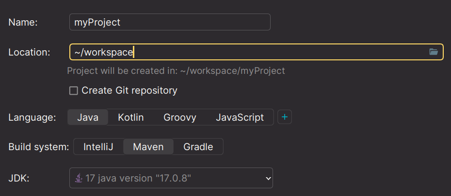 , and then select “Maven” as the “Build system”: